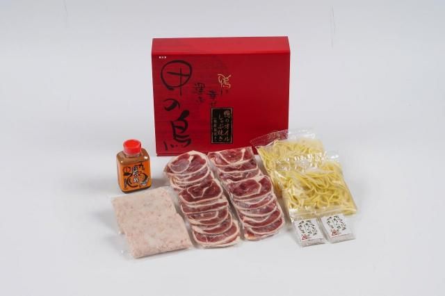 本鴨モモ肉100g×4、鴨皮100g×2、ごまだれポン酢200g、焼きそば130g×2 、カナールの塩5g×2