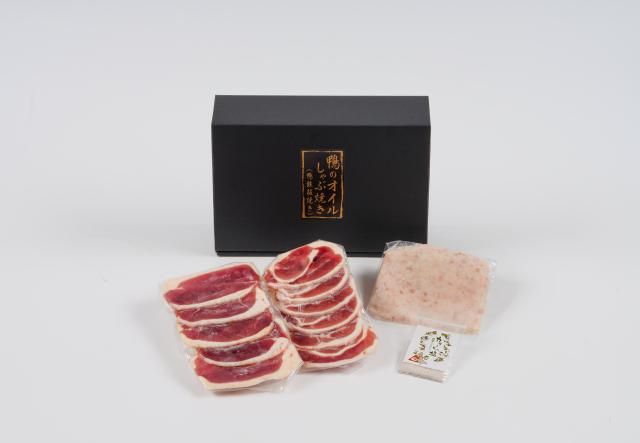 本鴨ロース100g、本鴨モモ肉100g、鴨皮100g 、カナールの塩5g